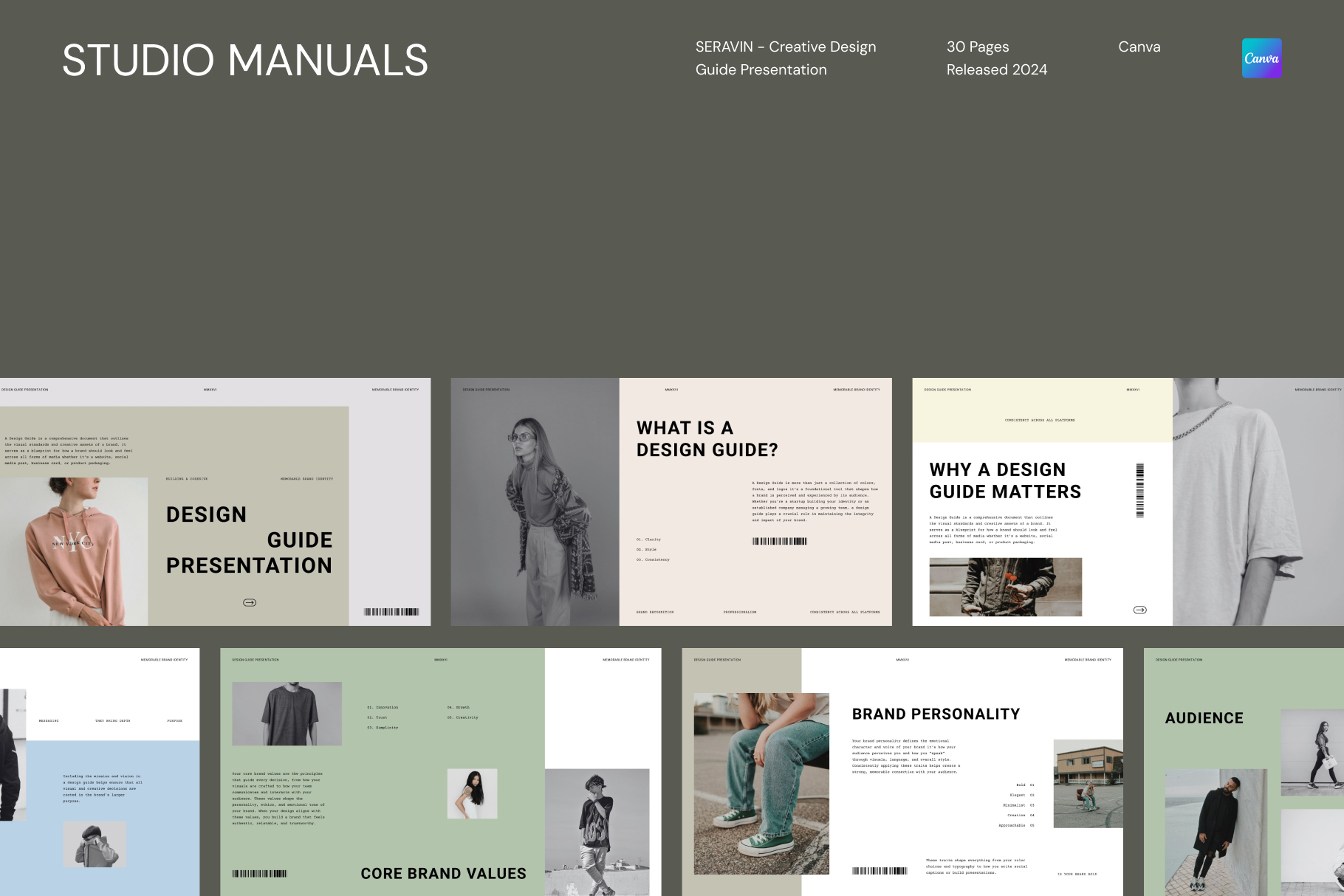 Seravin was made for those who work in color, type, and grid—people who understand the balance of logic and emotion in visual branding. Whether you’re preparing a client presentation, internal brand manual, or concept rollout, this template gives you a structured layout that is both clear and expressive.